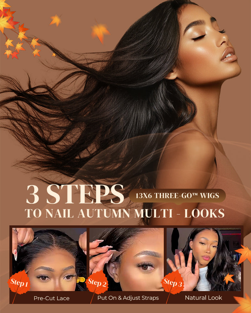 Arabella 13x6 Three-Go™ Glueless Wig Silky Straight With Drawstring Natural Black 100% Human Hair Wig13x6 Three-Go™ Glueless Wig Straight With Drawstring Natural Black 100% Human Hair Wig