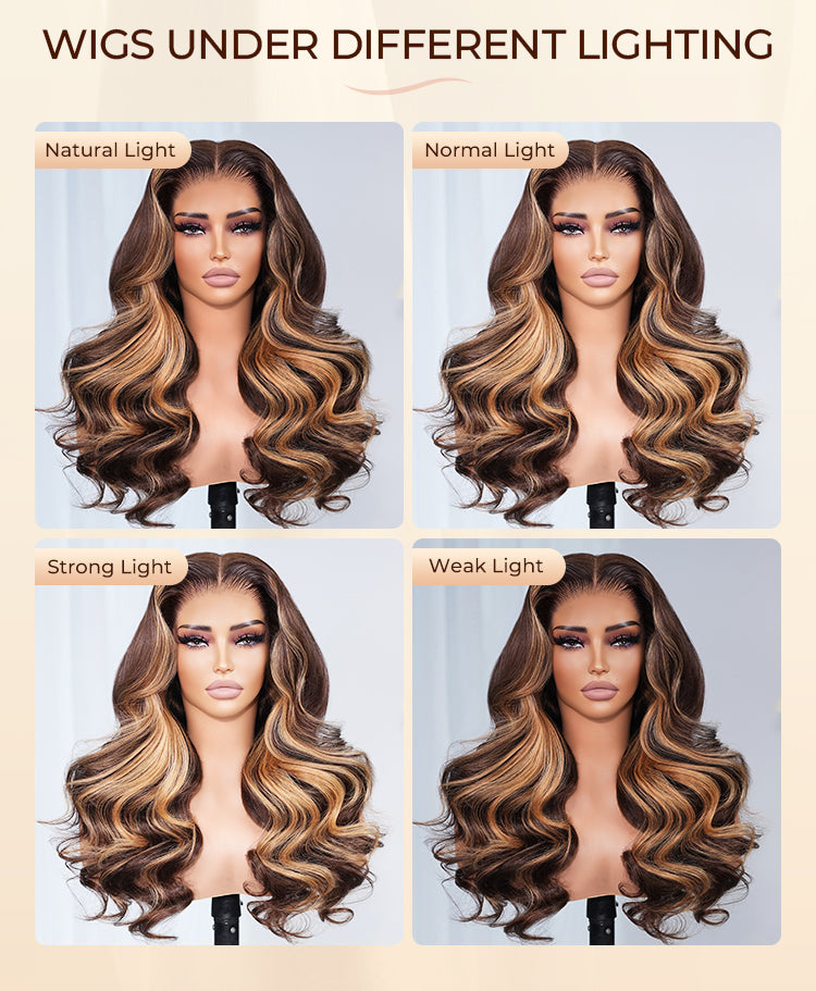 Arabella Three-Go™ 13x6 lace front wig—ombre highlight honey blonde, glueless Invisible HD Swiss lace: seamless fit on 13x6 glueless lace front human hair wig Arabella hair quality assurance: premium 100% human hair wig best human hair wig store arabella hair