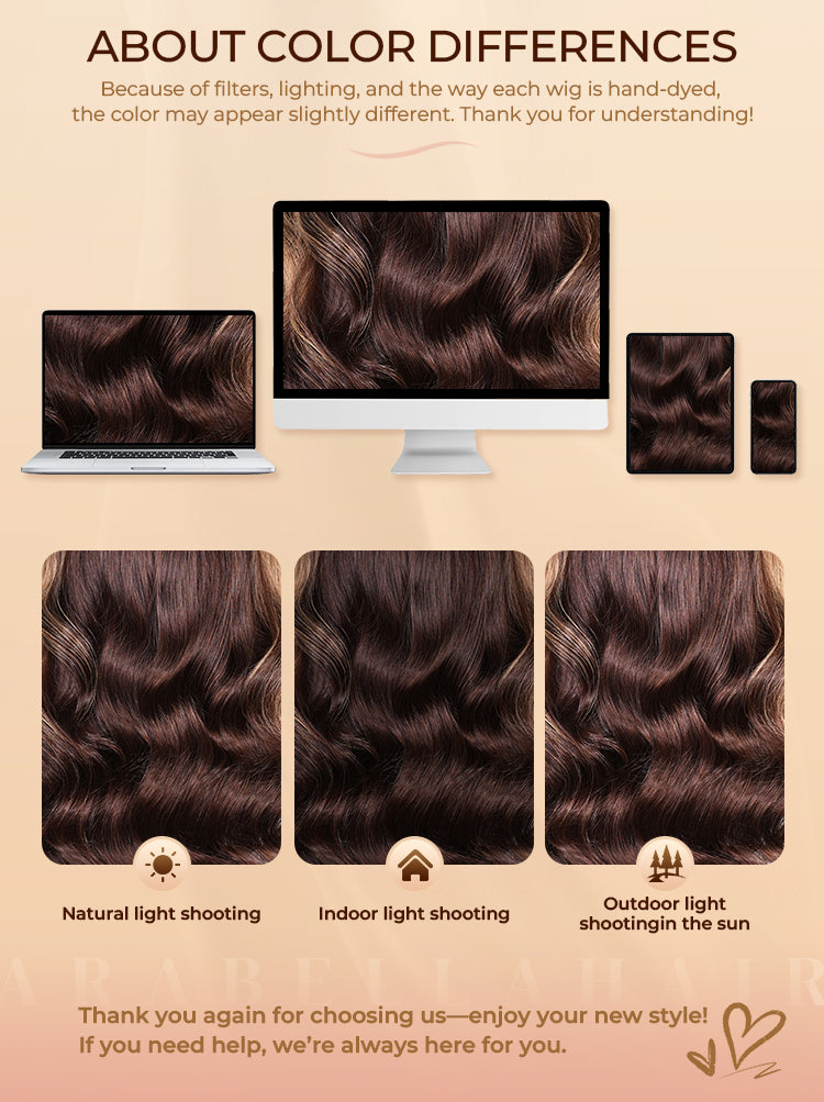 A: Yes. Most of our wig photos are taken from real products. Minor changes may occur during shipping, but the wig can be easily restored with light styling after arrival. Significant color differences are rare; slight variations may occur due to lighting, angles, or display settings.