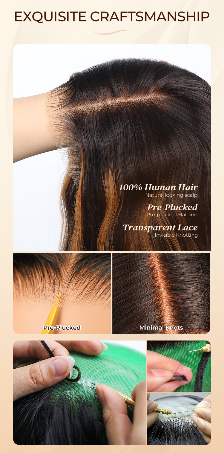 A: Our 6x5 and 13x6 wigs feature a glueless design with adjustable straps, combs, and a drawstring for a natural fit, allowing you to wear it easily, wear to go! While 13x4 lace wigs are usually installed with glue or adhesive for a secure fit.