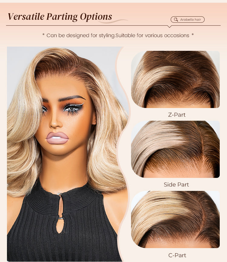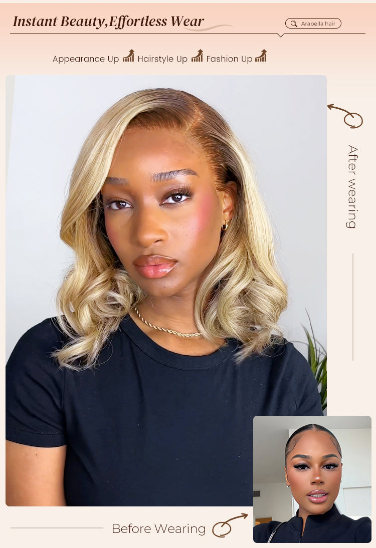 Beginner Friendly Buy 2, 30% Off Arabella 6x5 invisible knots Glueless Loose Body Wave Bob Wig Pre-cut Lace Brown Blonde Ombre Beginner Friendly