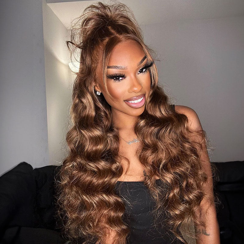 #12/613 Highlight 13x4 Lace Front Mixed Brown&Blonde Color Straight/Body Wave Human Hair Wig