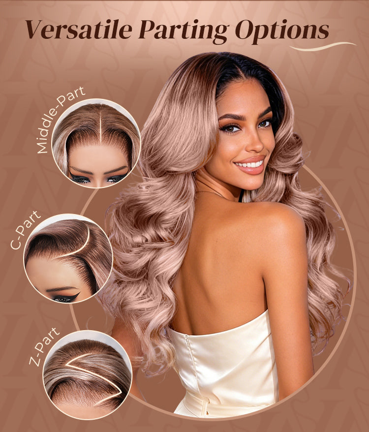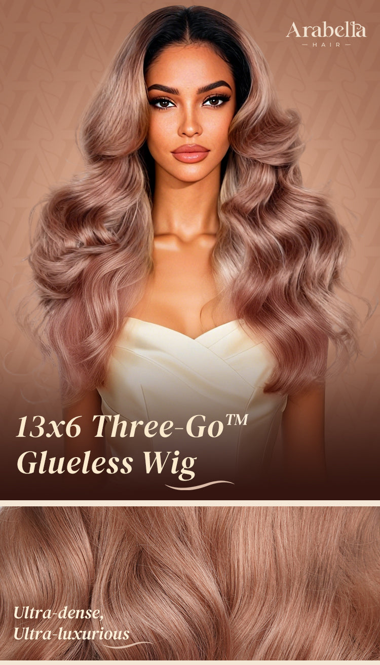 24H Shipping Arabella 13x6 Three-Go™ Rosy Pink Ombre Blonde Glueless Wig Loose Body Wave With Drawstring 100% Human Hair Wig