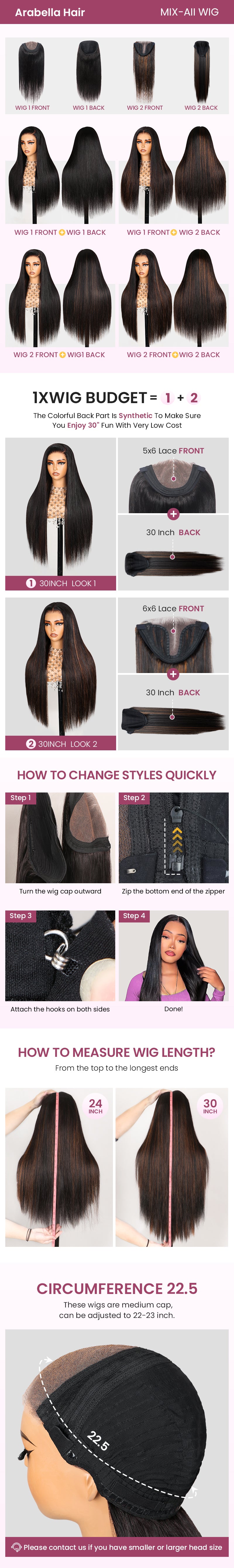 ZIP & Mix-All Wigs | Body Wave 6-Inch Deep Lace Color Optional Replaceable Front Wigs With Free 30 Inch After Wigs